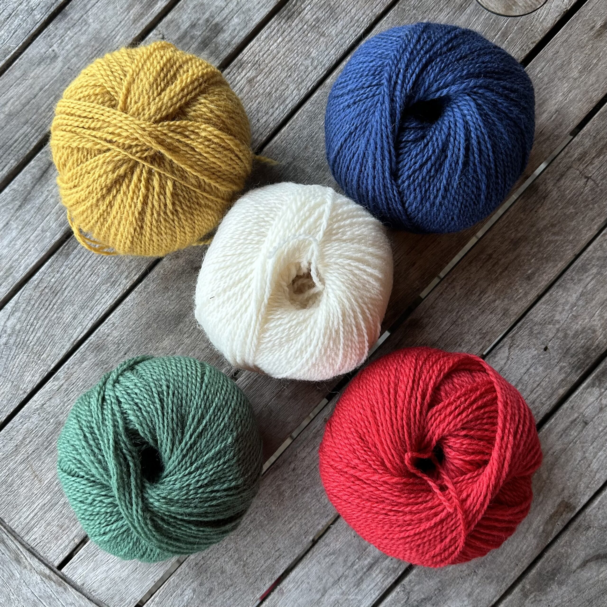 Since Norwegian Wool in these colours tends to sell out quickly, you can also use any DK-weight yarn. One of our favourites is Hillesvåg Ask (100% Norwegian wool, 100 g hanks / 315 m / 344 yds), available from ull.no.