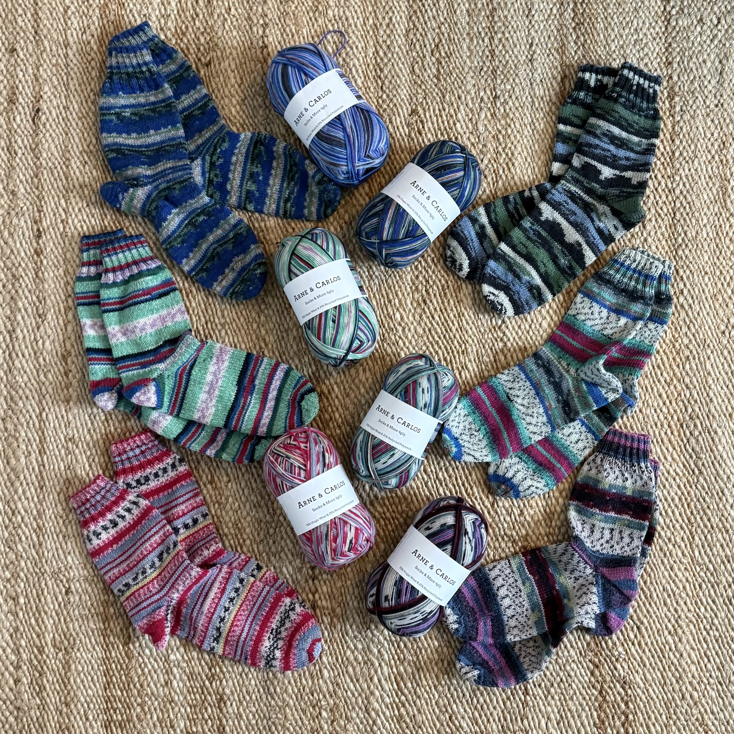 These new shades sit naturally alongside the existing palette. Some are softened and calm, others a little deeper — colours that work well on their own, but also speak easily to one another. They are designed for everyday knitting: socks you actually wear, projects that age well, and yarn that feels familiar in the hands.
